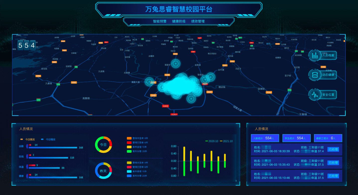 У԰¿µ½¡¹ÜÀíÆ½Ì¨Æ¾Ö¤Ð£Ô°ÖÇÄÜÖÕ¶Ë¡¢´«¸ÐÆ÷Êý¾Ý¶¨ÖÆ»¯Õ¹Ê¾¸÷¹¦Ð§Ä £¿éµÄʵʱÔËÐÐÊý¾Ý£¬¿ÉÊÓ»¯¼à²âѧÉúÇå¾²¡¢ÉúÃüÌåÕ÷¡¢Ô˶¯¿µ½¡¡¢·ÀÒß²âΣ¬×Ô¶¯ÌìÉúѧÉú¿¼ÇÚ¡¢ÌåΡ¢ÐÄÂÊ¡¢¿¨Â·ÀïµÈ¿µ½¡±¨¸æ¡£ÒÔ¡°ÊÂǰԤ·À¡¢ÊÂÖпØÖÆ¡¢Êºó´¦Öóͷ£¡±µÄÇå¾²±Õ»·¹ÜÀíΪÉè¼ÆÀíÄÈùÜÀíÕßʵʱ¡¢ÇáËÉÕÆÎÕѧÉúÇéÐΡ£