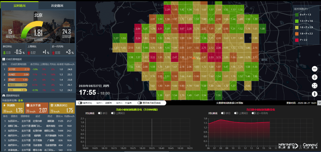 世纪高通还加入了交通指数国标讨论及差别指数算法的数据支持验证,并在切合国标的基础上举行立异,提出了“时空拥堵指数”以及“标准差”评估指标,辅助差别行业从多个维度更好地评价交通运行状态。