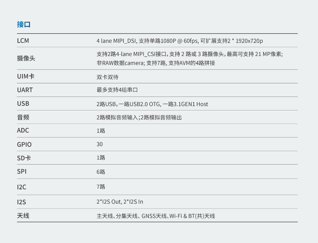 该模组的CPU接纳4核64位ARM Cotex-A53处置惩罚器,主频抵达2.0GHz,内置IMG GE8300 GPU, 支持LPDDR4/4X存储内存,可知足车内-40℃~+85℃的宽温要求。同时提供功效强盛的多标准音视频编解码器及富厚的外围接口,支持1080P高清显示,可同时实现多路高清视频输入录制。